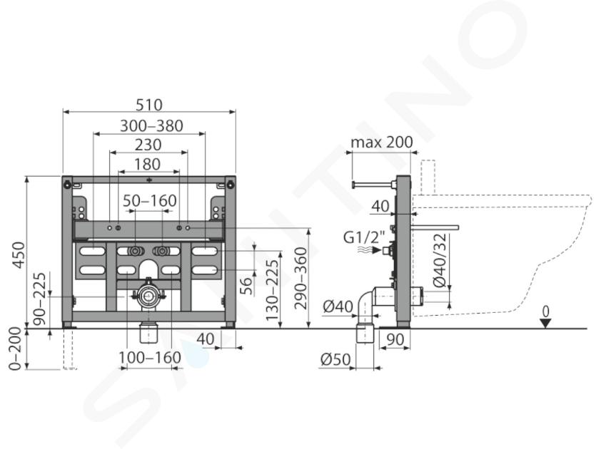 Einbaurahmen für Bidet für hängendes Bidet mit 180 mm oder 230 mm... Vollständige Beschreibung anzeigen