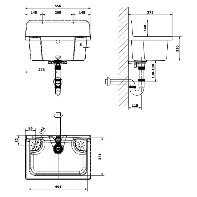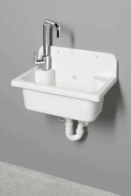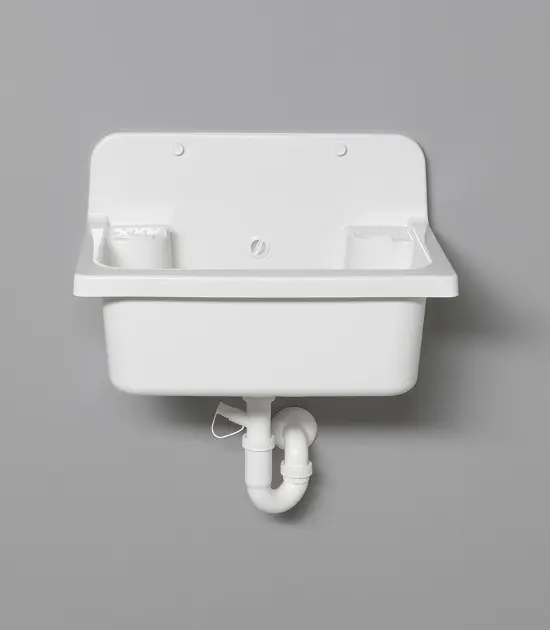 Hänge-Ausgussbecken mit Ablagefläche Ausführung: Kunststoff weiß... Vollständige Beschreibung anzeigen