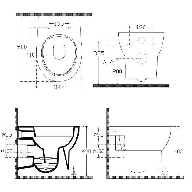 Hängende Toilette Absolute Farbe: weiß Größe 347 x 500 mm Randlose... Vollständige Beschreibung anzeigen