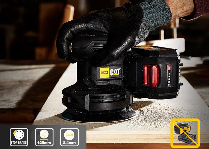 Rotationsexzenterschleifer kann zum Schleifen und Polieren verwendet werden. Er ist mit einem System von Haken, Schlaufen und Klemmen, einer variablen Geschwindigkeitsregulierung und einer Staubabsaugung ausgestattet. Für einen besseren Halt ist ein Gummigriff vorgesehen, beim Auslösen wird das Bremssystem der Scheiben aktiviert. Staubabsaugung und Ein/Aus-Schalter