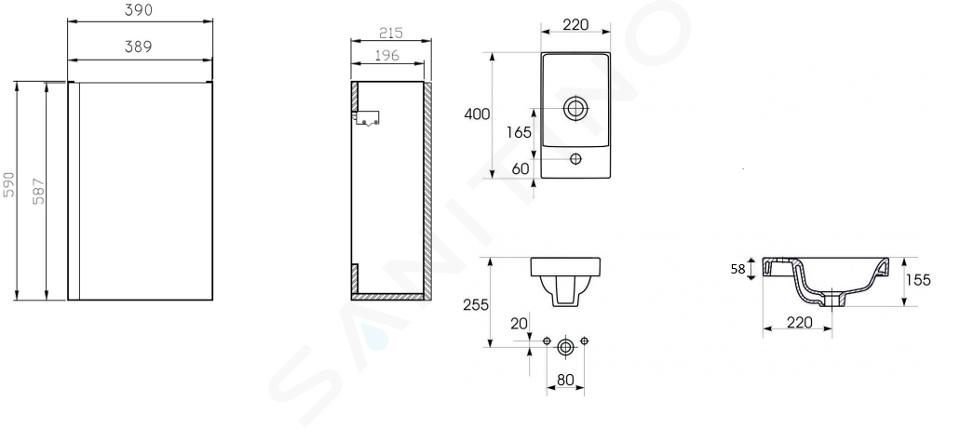 Waschtisch mit Unterschrank Moduo 40 Farbe: weiß Material des... Vollständige Beschreibung anzeigen