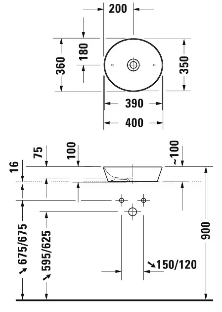 Aufsatzwaschtisch, ohne Überlauf