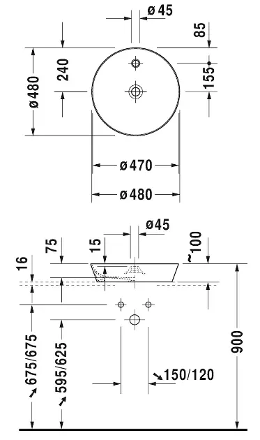 Aufsatzwaschtisch, ohne Überlauf Abmessungen: Ø 480 x 100 mm Material... Vollständige Beschreibung anzeigen