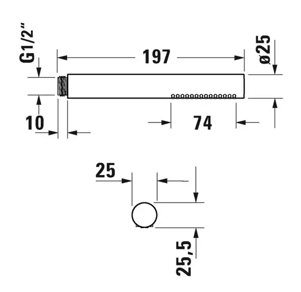 Stangenhandbrause Farbe: Chrom Durchmesser: 25 mm Länge: 197 mm 1... Vollständige Beschreibung anzeigen