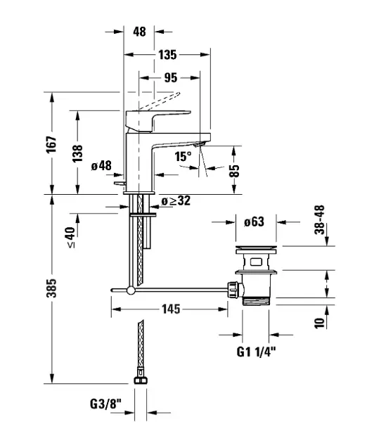 Waschtischmischer für Standmontage, mit Ablaufgarnitur