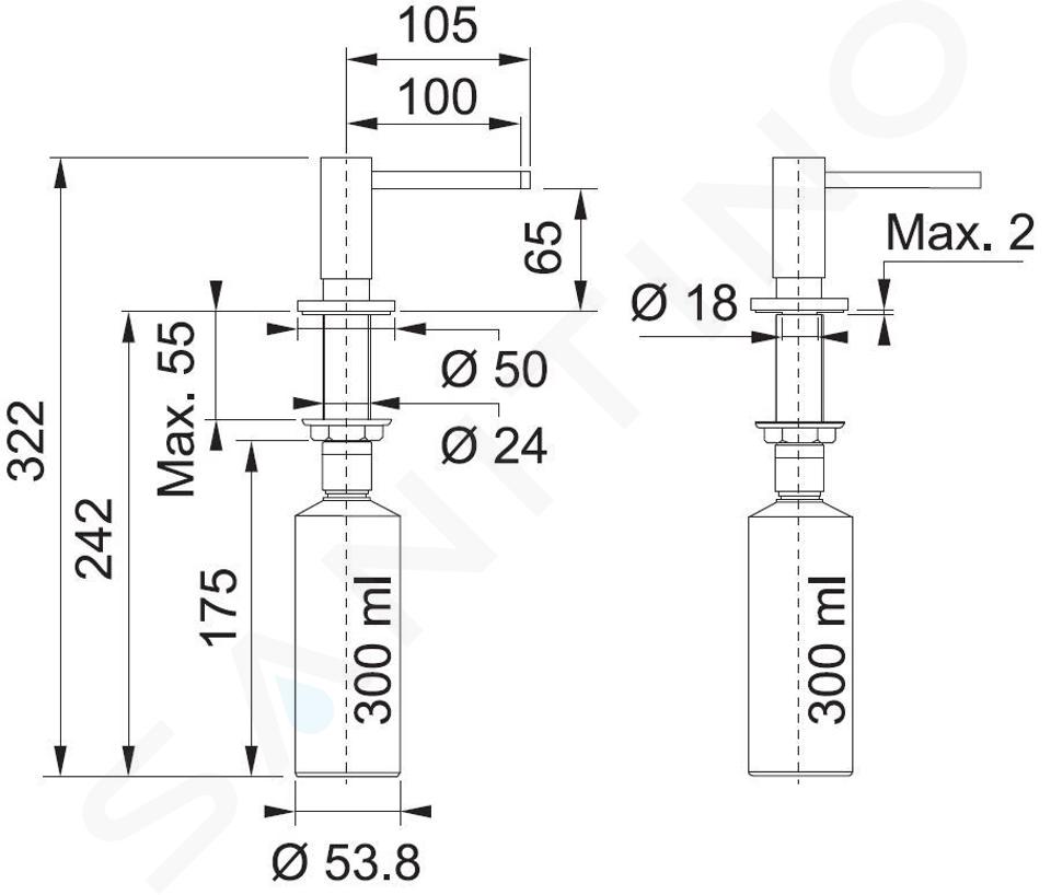 Die Schönheit des Ganzen wird durch viele kleine Details beeinflusst, die oft über die Balance der Raumatmosphäre entscheiden. Es ermöglicht Ihnen nicht nur die physische Sauberkeit Ihrer Küche zu erhalten, sondern konzentriert sich auch auf die optische Sauberkeit. Sie können unansehnliche farbige Gläser herkömmlicher Reinigungsmittel durch einen geschmackvollen Einbaubehälter mit 300 ml Volumen ersetzen, der immer griffbereit ist und mit dem Rest Ihres gewählten Küchenstils harmoniert. Die Steuerung ist einfach und zuverlässig. Die Befüllung erfolgt von oben. Der Waschmittelspender passt durch sein Design perfekt zu einer Reihe weiterer Küchenelemente von Franke. Es konzentriert sich hauptsächlich auf Tektonit-Küchenspülen und dazu passende Spültischmischer. So haben Sie die Chance, Ihre Küche perfekt zu harmonisieren.
