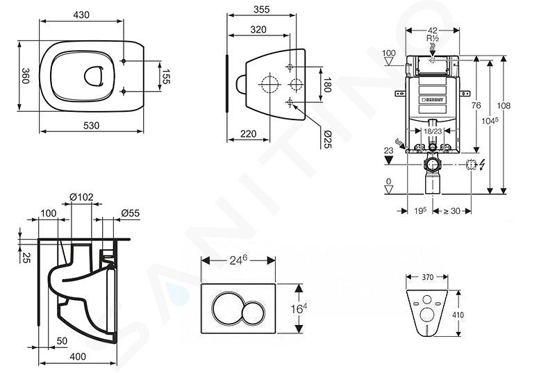 Set - Vorwandelement, WC und WC-Sitz Ideal Standard Tesi, Betätigungsplatte Sigma01, Chrom matt