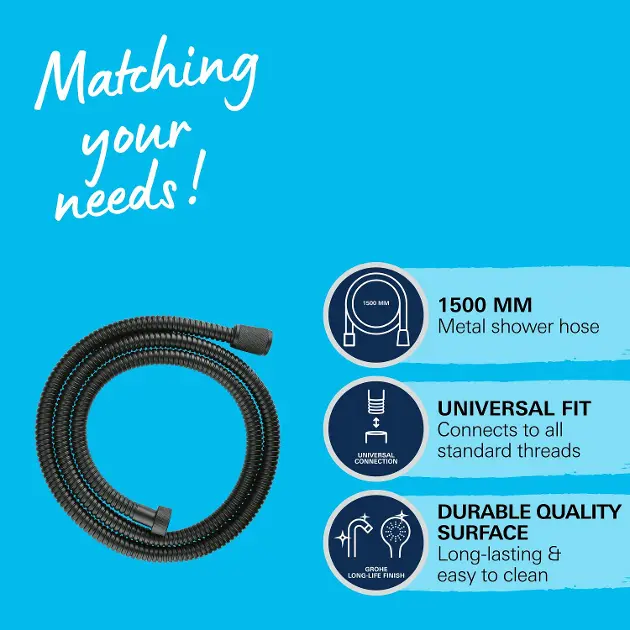 Brauseschläuche, die die Qualität des Duschens unterstützen und das Entspannungserlebnis verbessern, zeichnen sich durch Hitzebeständigkeit von mindestens 70 ˚C, hohe Zugfestigkeit und Druckbeständigkeit aus. Sie sind mit einem Knickschutzsystem und einer Bruchsicherung ausgestattet. Behandelte glatte Oberflächen verhindern Kalkablagerungen und erleichtern die Pflege. Zur Auswahl stehen die Längen 1 000 mm, 1 250 mm, 1 500 mm, 1 750 mm und 2 000 mm sowie die Oberflächen Chrom, Supersteel, Dunkelgraphit, Weiß, Velvet Black, Nickel, Cool Sunrise und Warm Sunset.