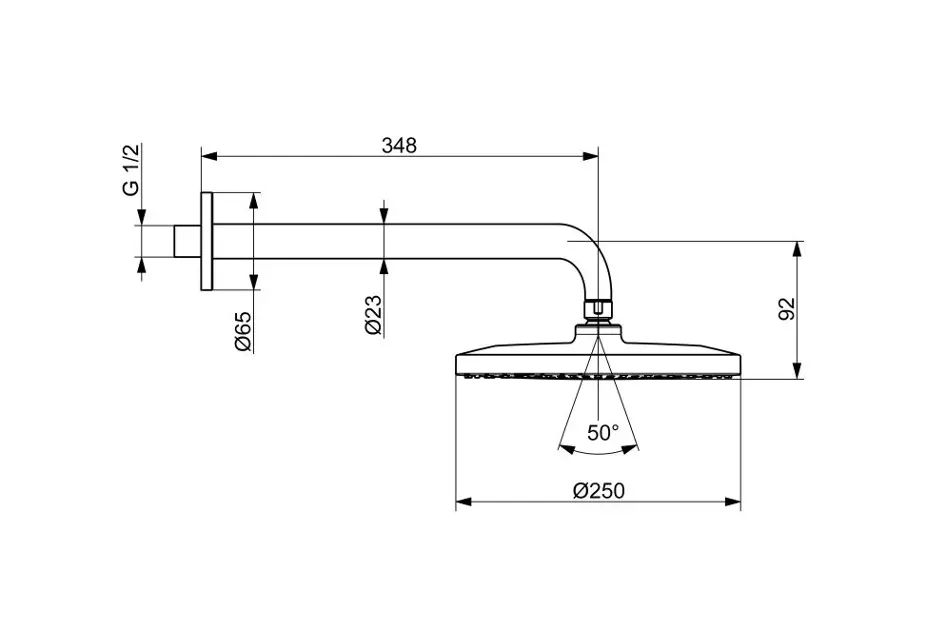 Kopfbrause mit Arm Farbe: Chrom runde Form Durchmesser: 250 mm... Vollständige Beschreibung anzeigen