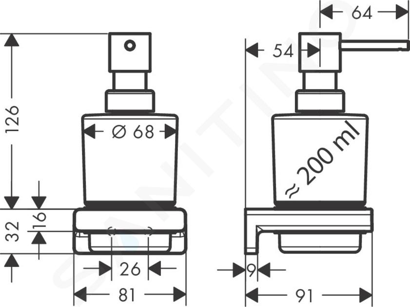 Seifenspender mit Halterung Volumen: 200 ml Abmessungen: 91 x 126 x 86... Vollständige Beschreibung anzeigen