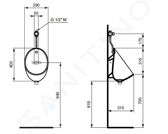 Urinal Eurovit Farbe: weiß Material: Sanitärkeramik Abmessungen: 290 x... Vollständige Beschreibung anzeigen