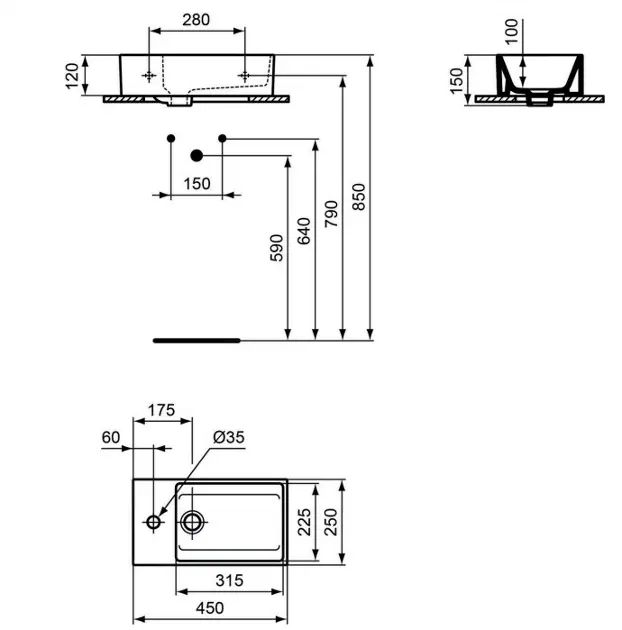 Rechteckiges Handwaschbecken Unterseite glasiert mit Überlauf mit 1... Vollständige Beschreibung anzeigen