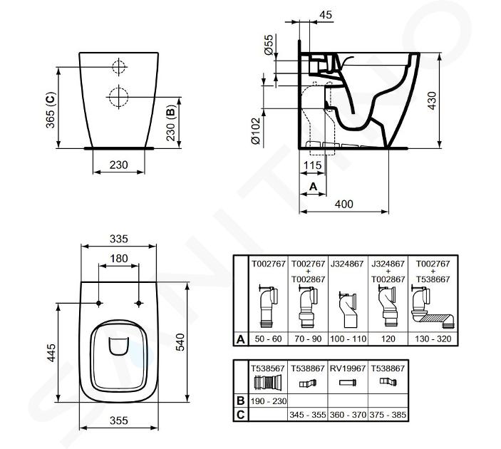 Stand-WC Farbe: weiß Material: Sanitärkeramik Abmessungen: 430 x 355... Vollständige Beschreibung anzeigen