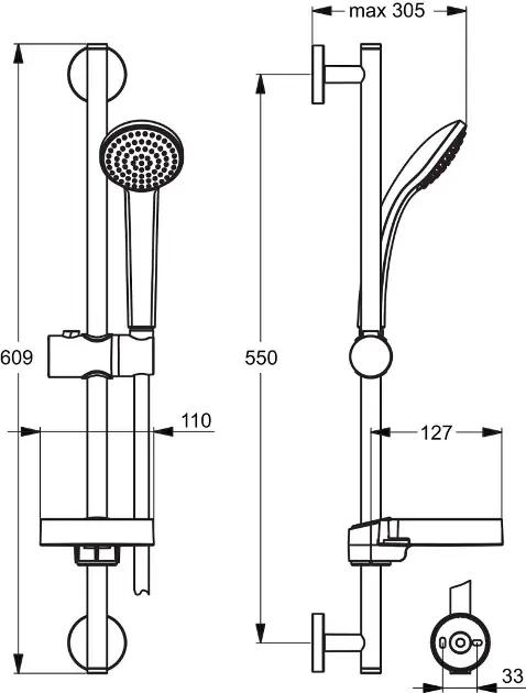 Brausegarnitur mit Brausekopf, Halter, Brausestange und -schlauch
