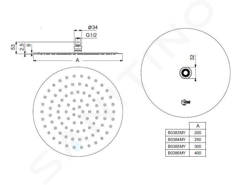 Ultraflache Kopfbrause LUXE aus Metall Durchmesser 250 mm Durchfluss... Vollständige Beschreibung anzeigen