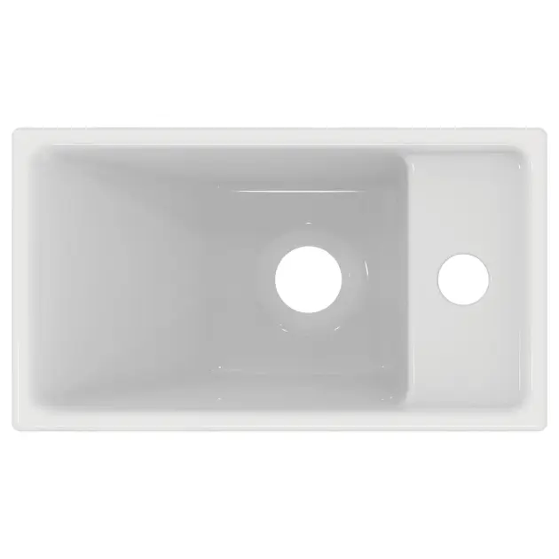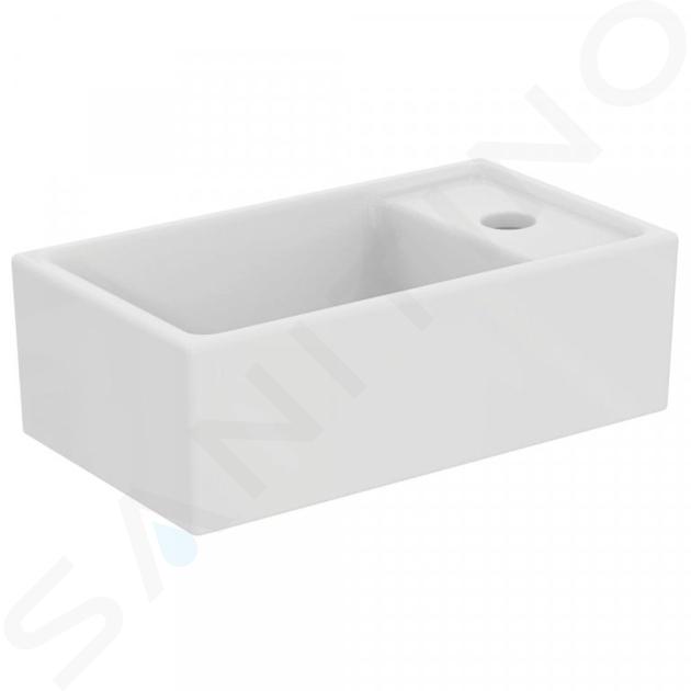 Das Handwaschbecken bringt eine angenehme Möglichkeit in den Toilettenraum, sich direkt nach dem Toilettengang die Hände zu waschen. Es hat aber auch noch einen anderen Verwendungszweck - Sie können bei ihm zum Beispiel die Zähne putzen, wenn Sie morgens in Eile sind, aber erfahren, dass es im Badezimmer voll ist. Das Handwaschbecken ist kurzum ein weiterer praktischer Helfer in den Haushalt. Die Abmessungen des Handwaschbeckens sind 370 x 210 mm. Es ist ziemlich hoch, so dass Sie bei Bedarf und Notwendigkeit darin auch Socken oder Strümpfe waschen können. Das Handwaschbecken ist ohne Überlauf - vergessen Sie dazu nicht einen nicht-verschließbaren Abfluss zu besorgen. Sonst besteht die Gefahr, dass Sie versehentlich den Toilettenraum überfluten. Die Designer von der Marke Ideal Standard haben dieses Handwaschbecken mit einem Hahnloch für die Waschtischarmatur auf die rechte Seite entworfen. Das Hahnloch für den Wasserhahn ist bereits schon aus der Herstellung durchbohrt. Dieses Handwaschbecken ist für die Wandbefestigung mithilfe von zwei Befestigungsschrauben M10 x 140 mm geeignet.