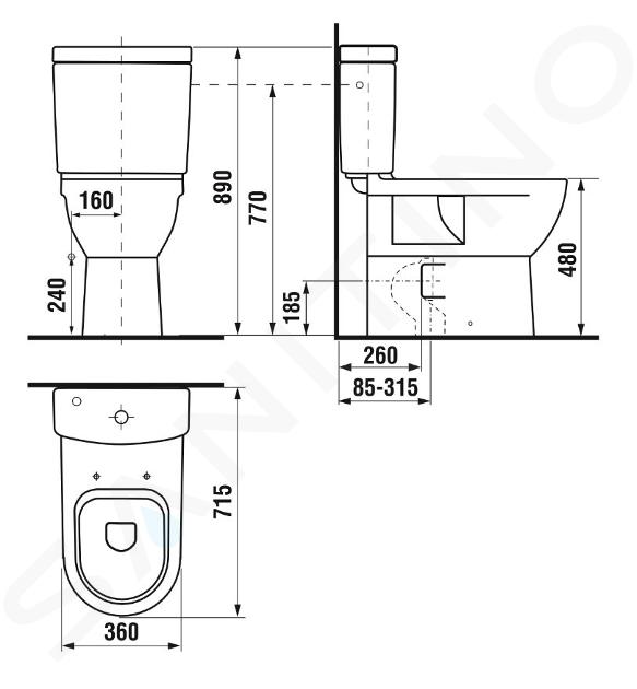 Spülkasten mit Armatur und Sitz mit Deckel müssen separat bestellt werden.