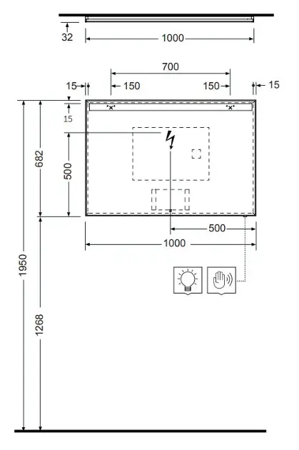 KLUDI-LUMA Rechteckiger Spiegel mit LED-Beleuchtung Abmessungen 1000 x... Vollständige Beschreibung anzeigen