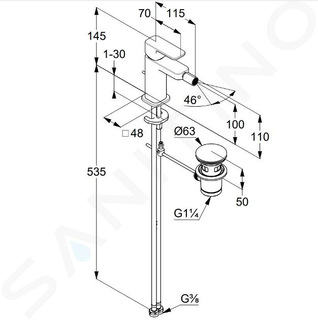 Bidetmischer für Standmontage, mit Ablaufgarnitur