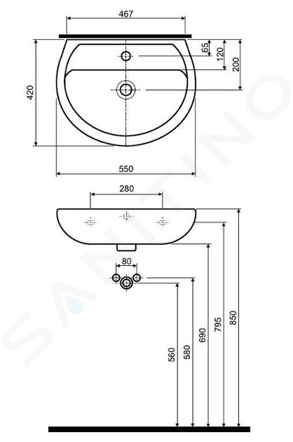 Waschtisch, kombinierbar mit Halbsäule Abmessungen: 550 x 420 mm mit... Vollständige Beschreibung anzeigen