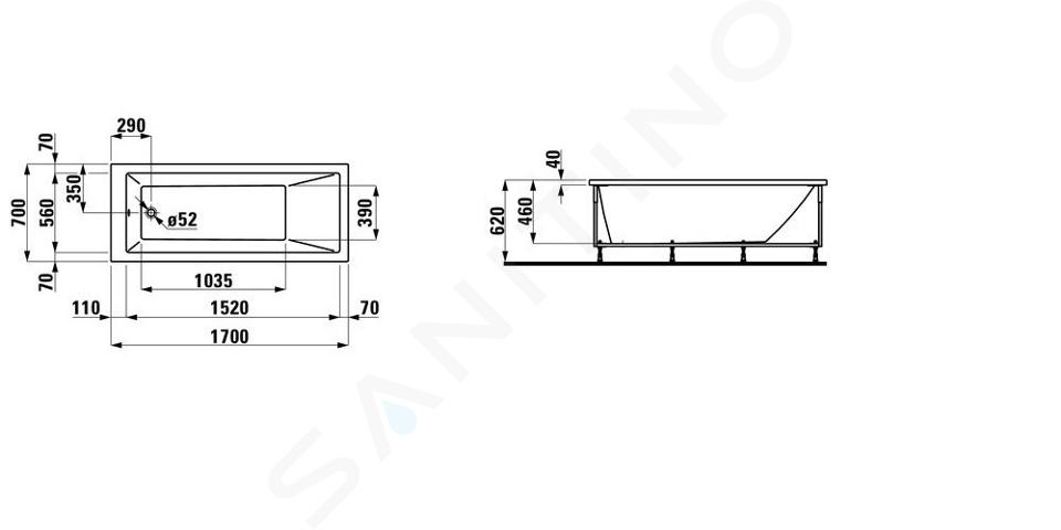 Eckbadewanne rechts mit Frontplatte, Modell links, mit Konstruktion