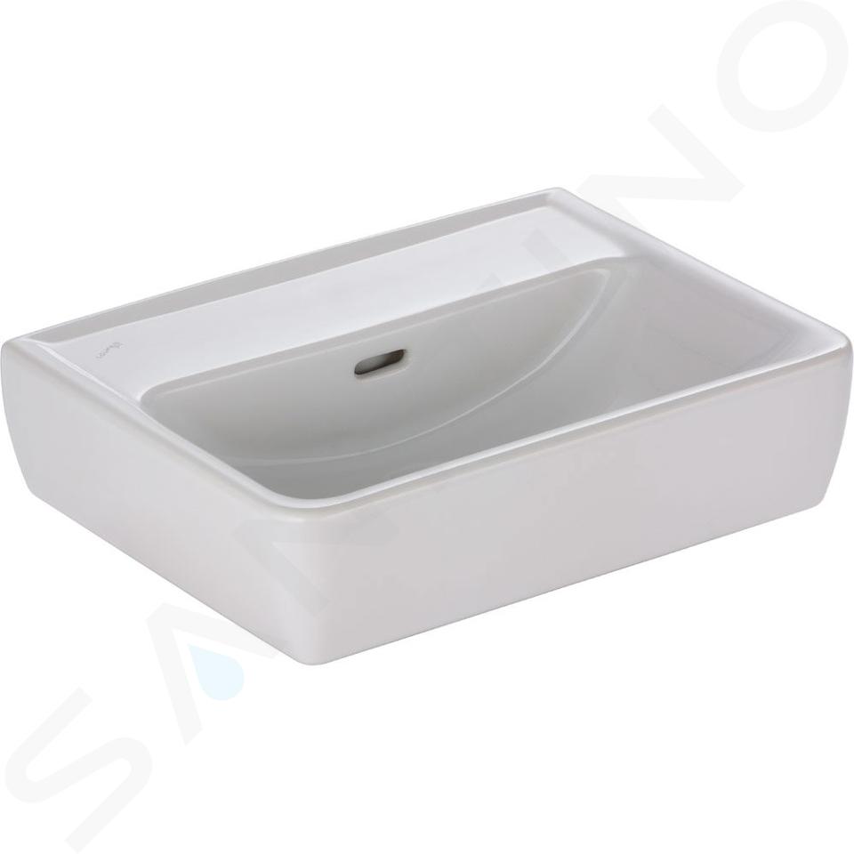 Handwaschbecken ohne Hahnloch, mit Überlauf.