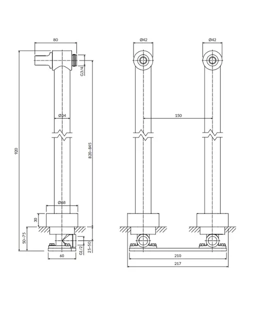 Anschluss für den Einbau der Wannenbatterie im Boden