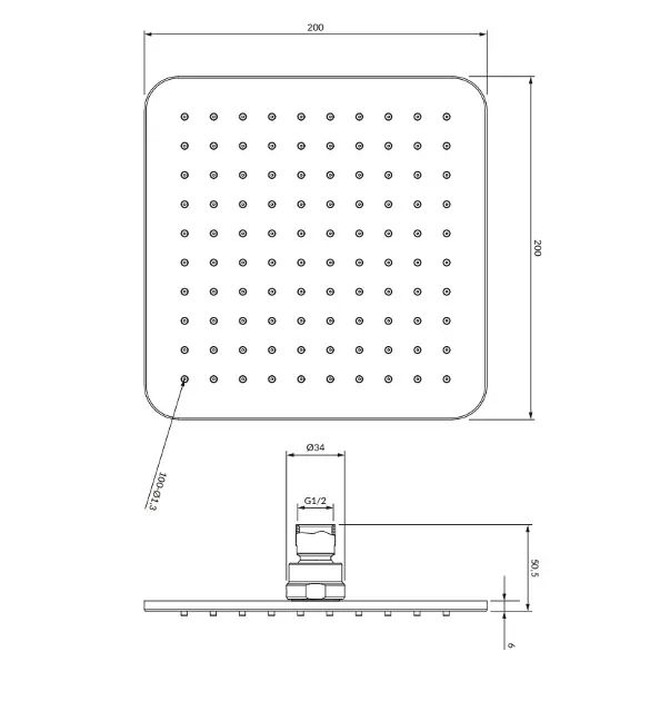 Obere Dusche farbe mattschwarz material Messing größe 200 x 200 mm... Vollständige Beschreibung anzeigen
