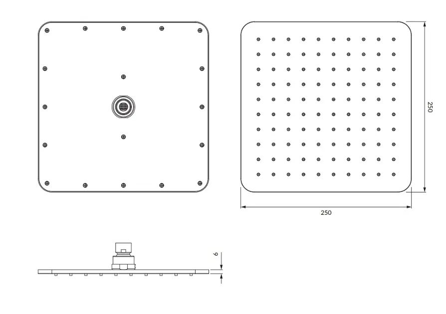Obere Dusche farbe mattschwarz material Messing größe 250 x 250 mm... Vollständige Beschreibung anzeigen