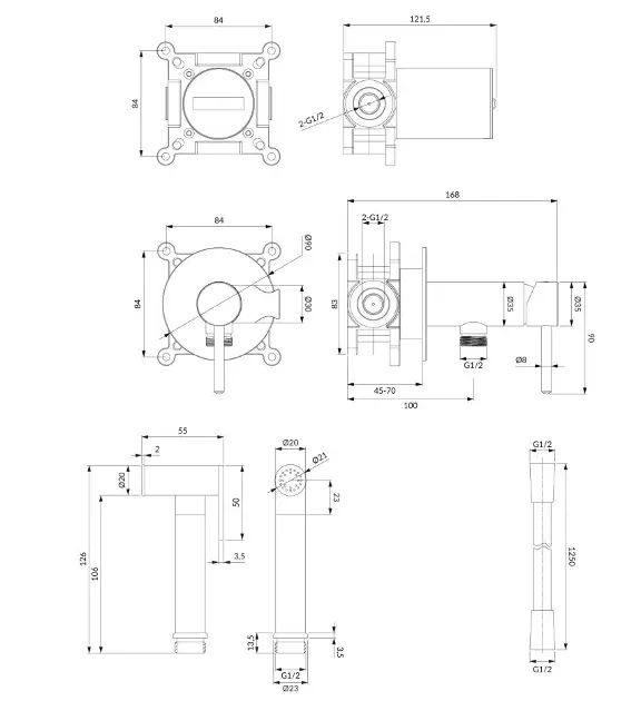 Unterputz-Bidetarmatur, mit Einbaukörper und Zubehör Farbe: Chrom... Vollständige Beschreibung anzeigen