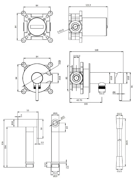 Unterputz-Bidetarmatur, mit Einbaukörper und Zubehör
