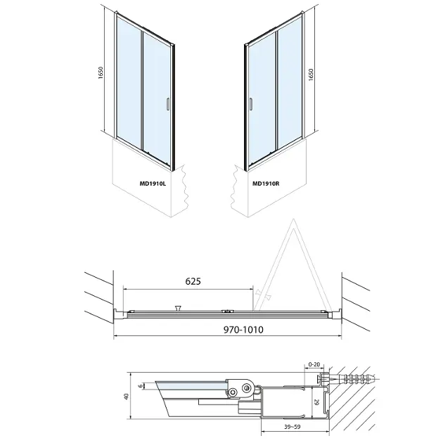 Duschfalttür TIEF, zweiteilig Einbaumaße (Nische): 990 mm (±20 mm)... Vollständige Beschreibung anzeigen