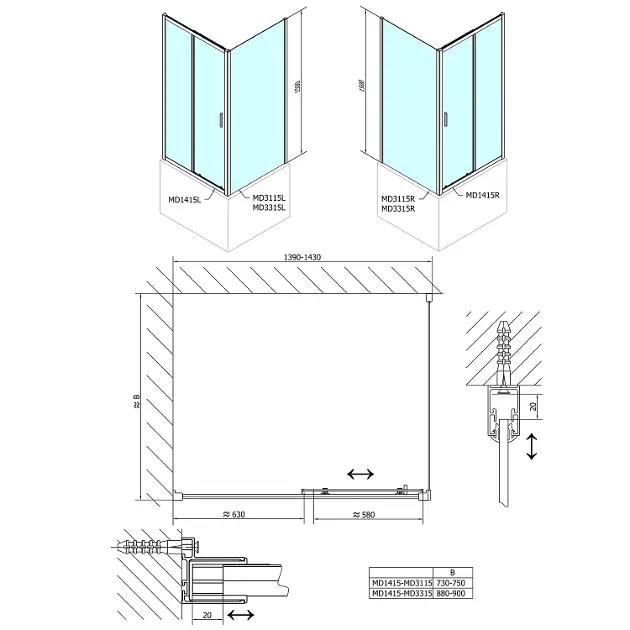 Seitliche Duschwand einbaumaß: 890 mm (±10 mm) höhe: 1500 mm... Vollständige Beschreibung anzeigen