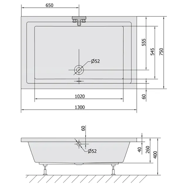 Wannenfüße sind nicht im Lieferumfang enthalten.