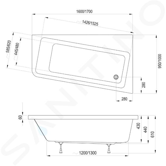 Asymmetrische Badewanne 10° Abmessungen: 1700 x 1000 mm Material:... Vollständige Beschreibung anzeigen