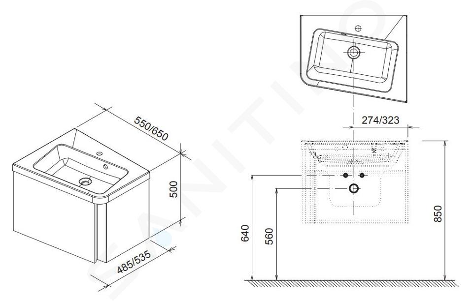 Unterschrank für Eckwaschtisch SD 650 R Abmessungen: 650 x 535 x 450... Vollständige Beschreibung anzeigen