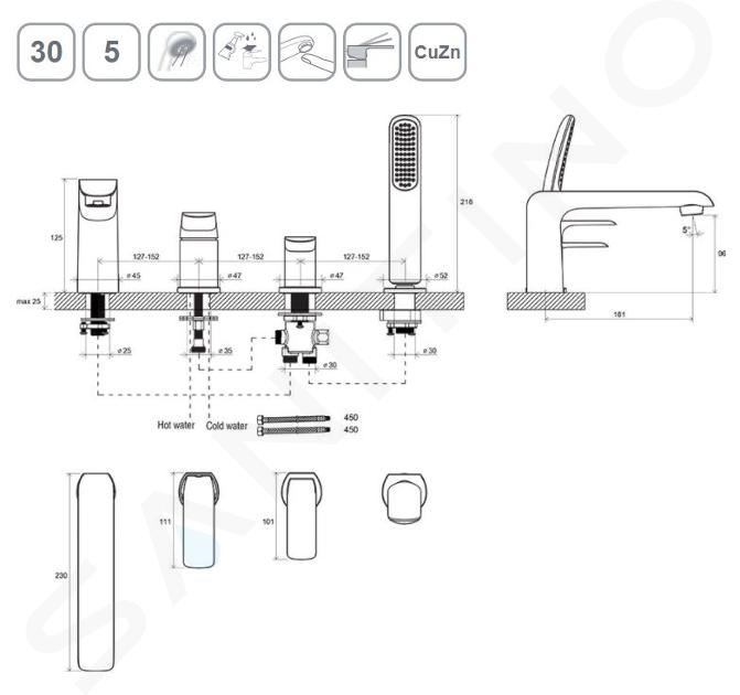 4-Loch Wannenarmatur für den Wannenrand aus hochwertigem Messing... Vollständige Beschreibung anzeigen