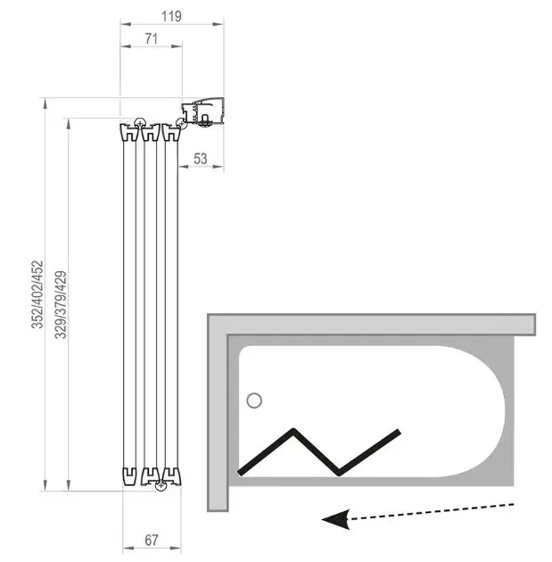 Dreiteilige Badewannenabtrennung zum Aufklappen Abmessungen: 1296 x... Vollständige Beschreibung anzeigen