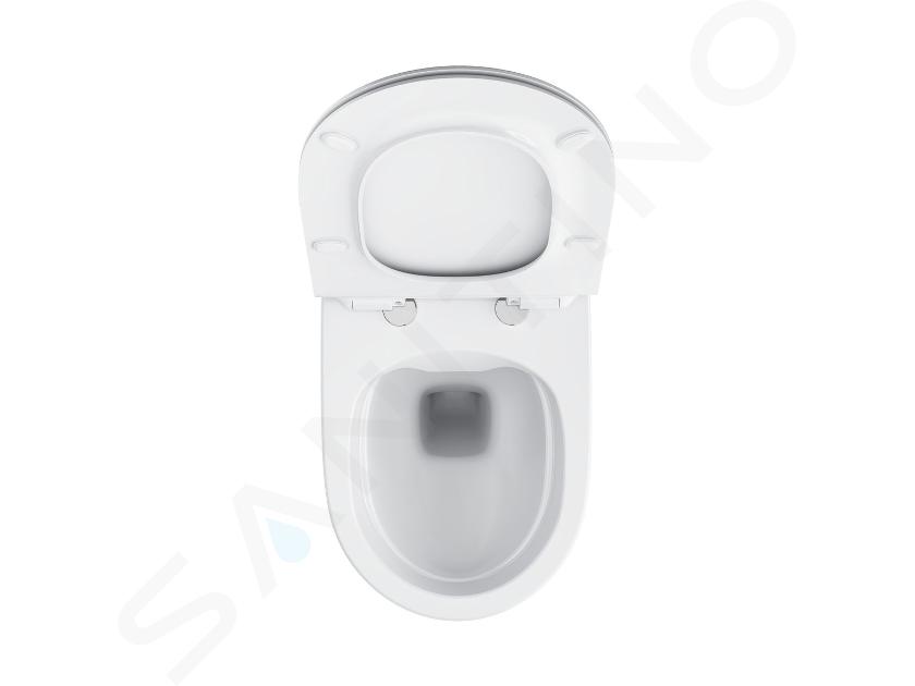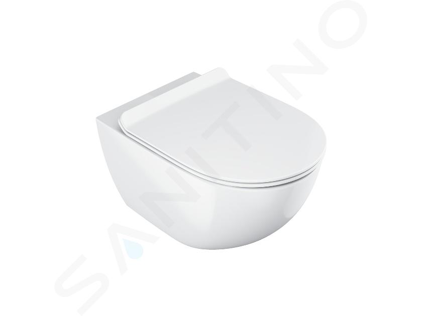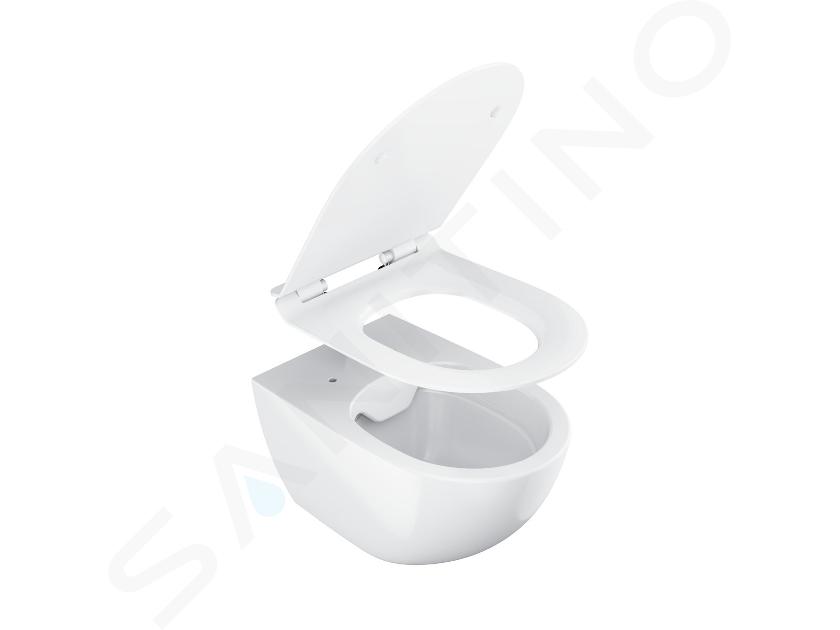 Randlose Spültechnologie für Schalen, die Schmutzablagerungen verhindert. Die spezielle Konstruktion der Toilette ermöglicht das Spülen mit einem einfachen Wasserstrahl, ohne dass eine zusätzliche Reinigung erforderlich ist.