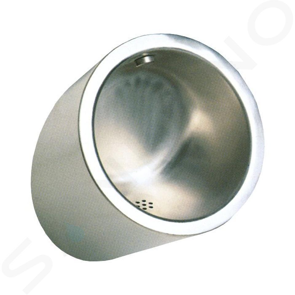 Vandalismussicheres Edelstahl-Urinal mit integrierter Spülung, Batterieversorgung 6 V DC