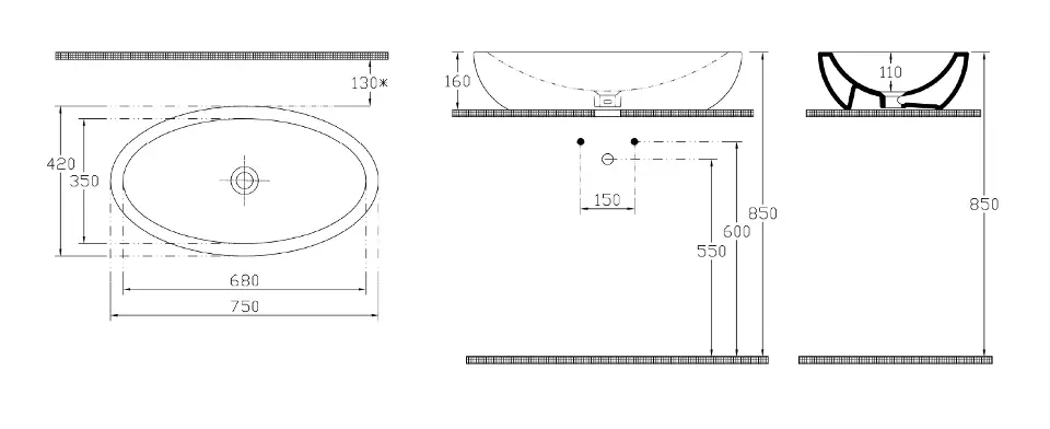 Ovales Keramik-Waschtischbecken Sistema Abmessungen: 750 x 420 mm ohne... Vollständige Beschreibung anzeigen