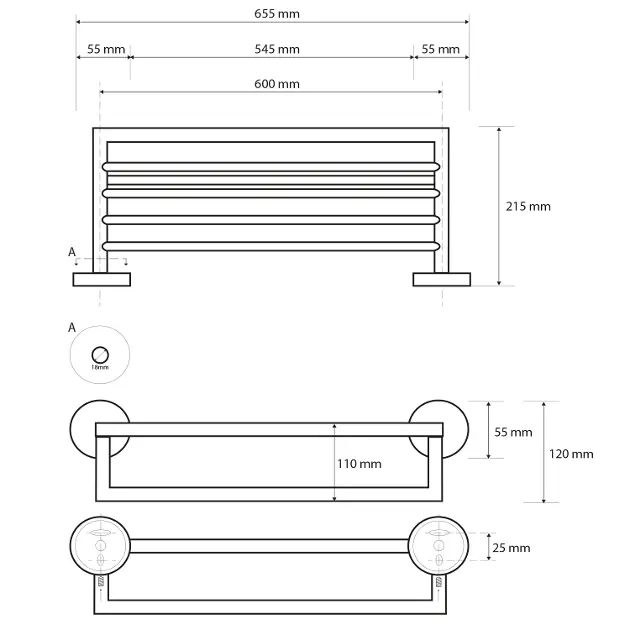 X-STEEL Handtuchablage mit Reling, Edelstahl gebürstet