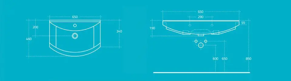 Möbelwaschtisch Farbe: weiß Material: Keramik Abmessungen 650 x 190 x... Vollständige Beschreibung anzeigen