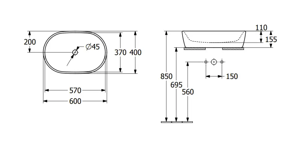 Ovales Aufsatzwaschbecken