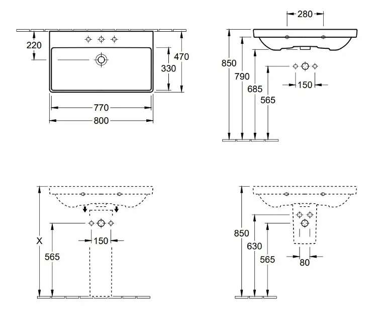 Möbelwaschtisch mit Überlauf für 3-Loch Armaturen mittleres Loch... Vollständige Beschreibung anzeigen
