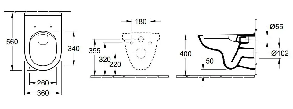 Wand-Tiefspül-WC Abmessungen: 360 x 560 mm Material: Sanitärkeramik,... Vollständige Beschreibung anzeigen